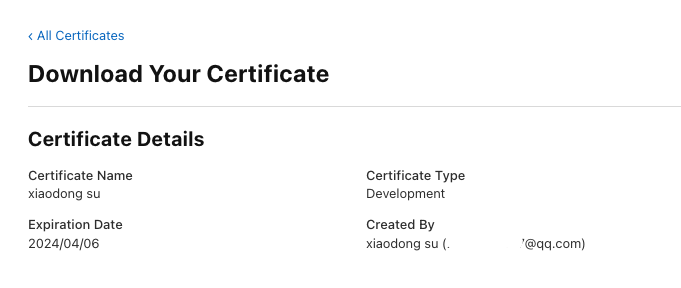 进入[开发者后台](https://developer.apple.com/account/resources/devices/list),选择Certificates,点击左上角 “+” 来新建开发证书。