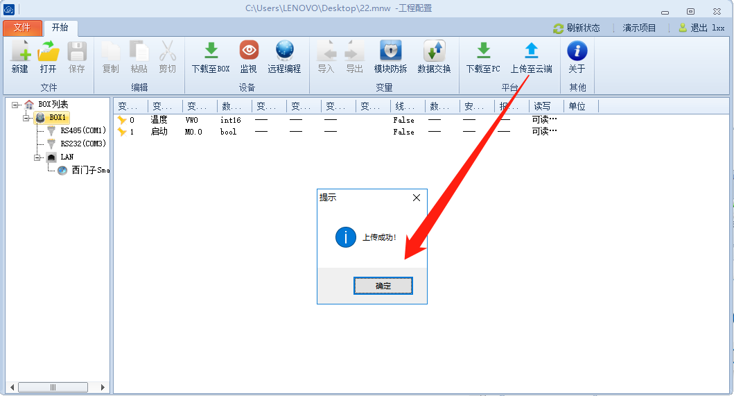 ### 4.3上传至云端