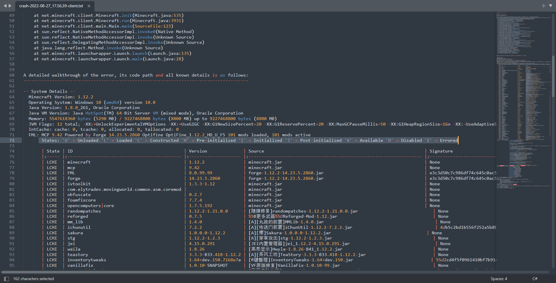 没有加载错误的模组跳转的[这里](https://easydoc.net/s/24428004/J1Xyn6kh/g0Ek8LZs)或者带上你的崩溃报告和日志去找大佬或者到[论坛](https://www.mcbbs.net/forum.php?mod=forumdisplay&fid=266&filter=typeid&typeid=497)或[百科](https://bbs.mcmod.cn/forum.php?mod=forumdisplay&fid=36)求助
