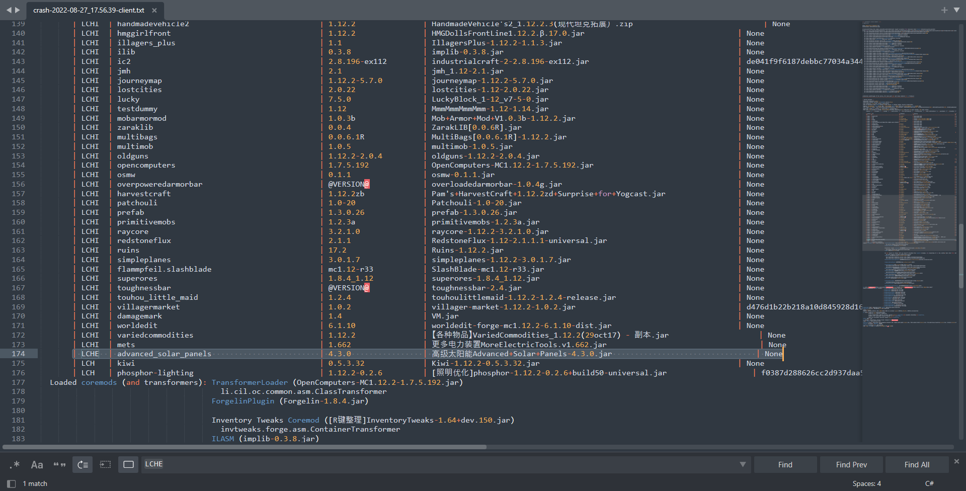 在.minecraft/crash-reports中找到最新的txt文件打开并下滑