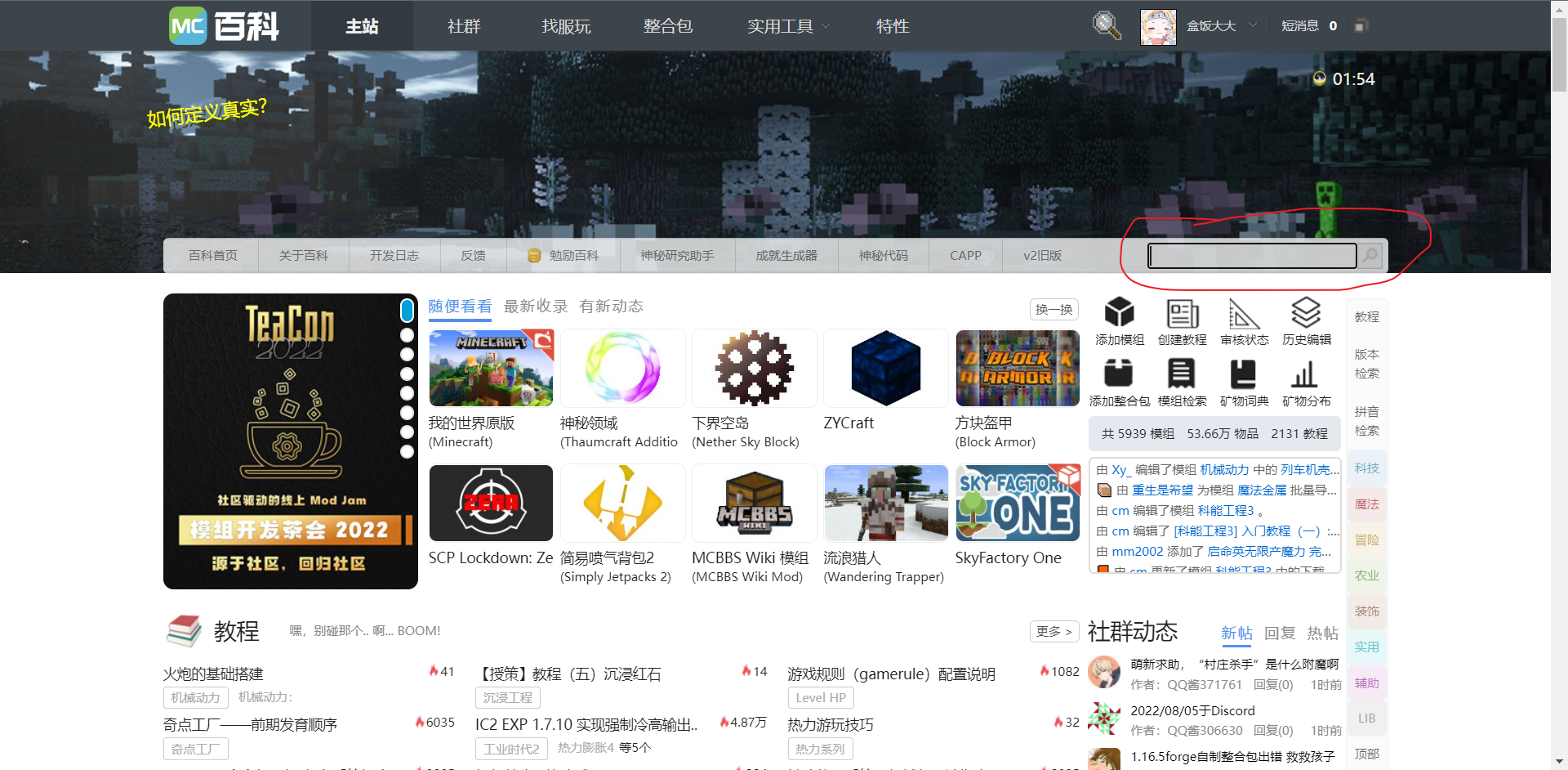 知道模组名字或者内容可以直接到[百科首页](https://www.mcmod.cn/)搜索或者在[这里](https://search.mcmod.cn/)搜索~都一样~