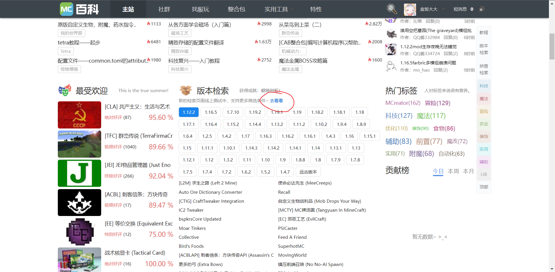来到[百科首页](https://www.mcmod.cn/)往下翻,找到版本探索点击去看看或者[这里](https://www.mcmod.cn/modlist.html)~都一样~