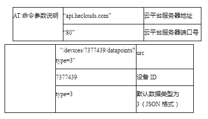 AT+CMHTTPSET="api.heclouds.com",80,"/devices/7377439/datapoints?type=3"