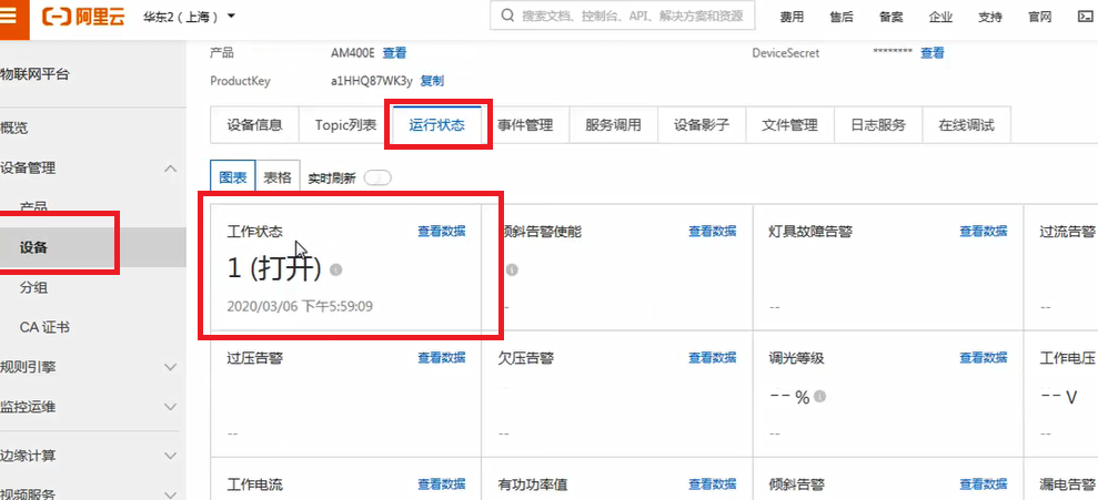 点开设备,运行状态,刷新页面,显示设备状态改变