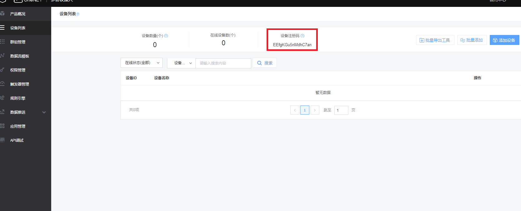 下图红色方框中表示创建的设备ID与设备APIKEY