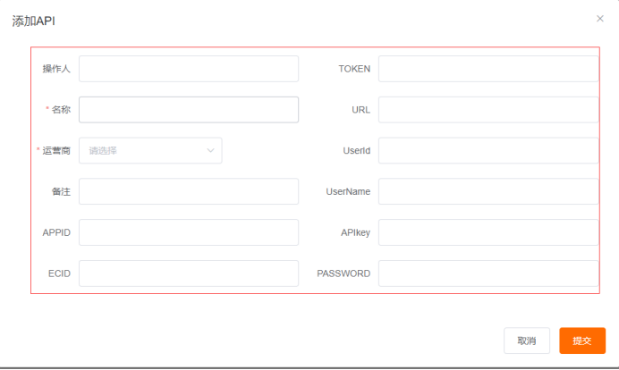 套餐信息根据情况填写:套餐,对接API,运营商,测试期,沉默期,开卡年限等