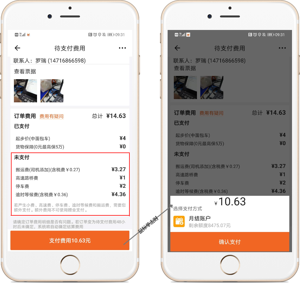 2.司机在运送货物结束后,如果运送过程中实际产生了(高速费,等候费,停车费,搬运费),再与用户协商后,司机可添加至账单(其中高速费,停车费司机必须添加票据)