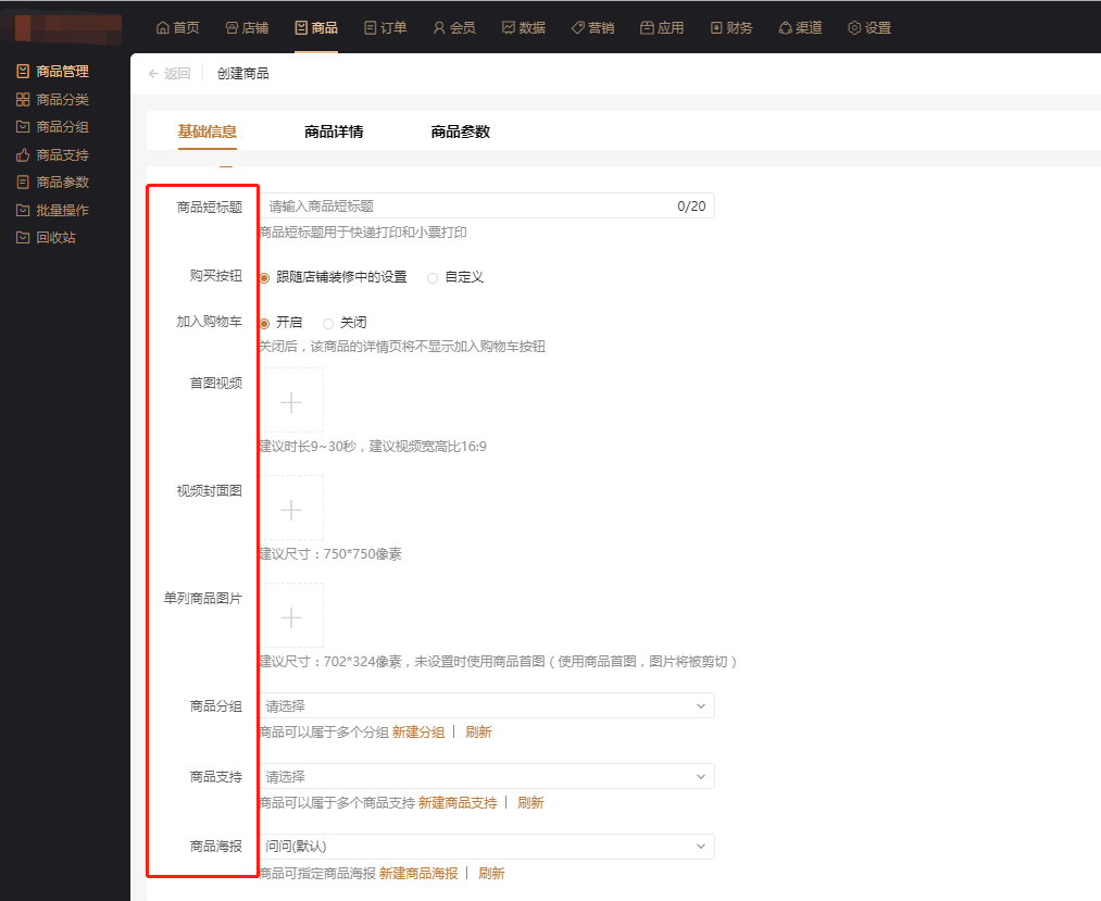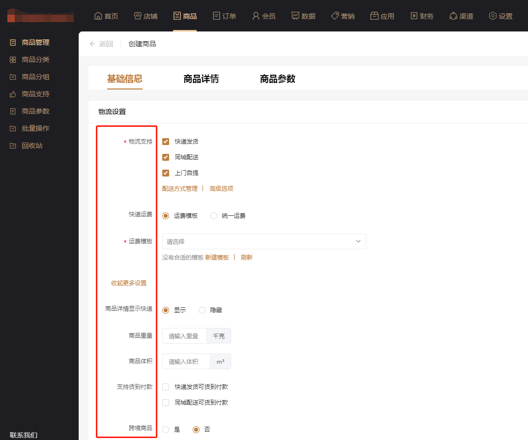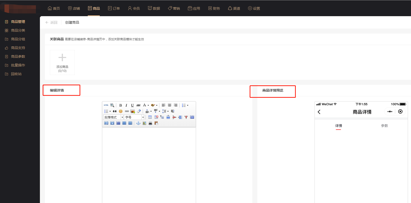 实体商品、虚拟商品、电子卡密、计次时商品、预约商品、批发商品的创建。
