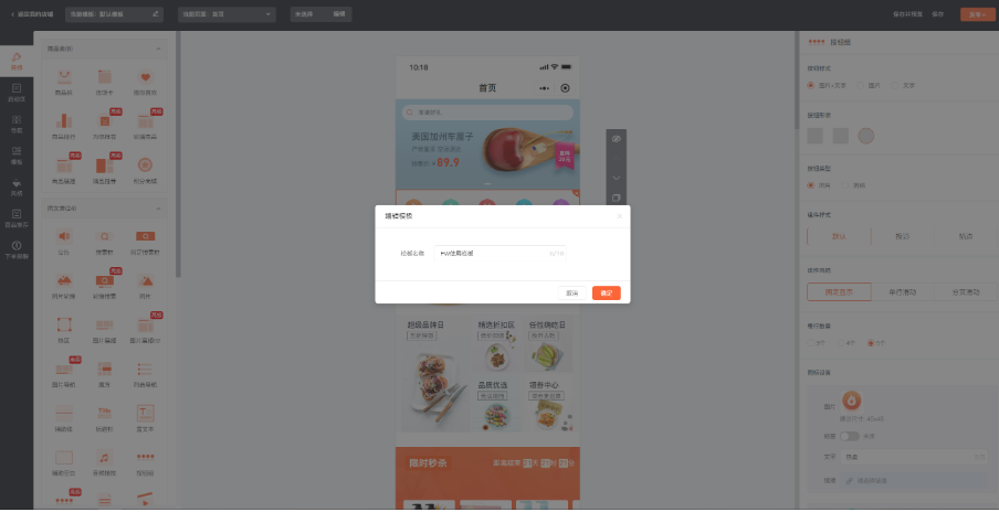 右侧为:元素组件编辑详情,可进行颜色、边距、图片等调整操作