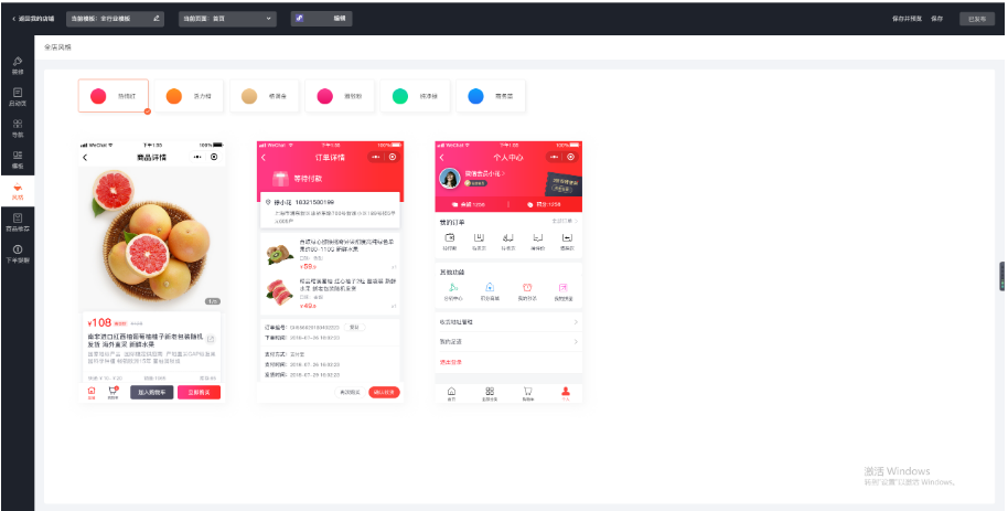店铺装修风格是业务端商家使用商城系统提供的装修元素,丰富店铺页面和内容。根据不同的需求选择不同颜色的主体,装修个性化页面。