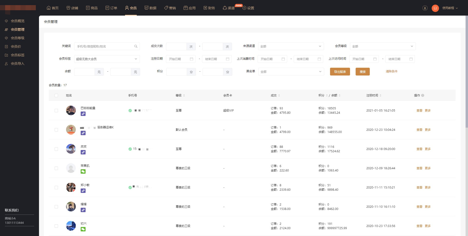 点击【会员数】可看到该标签的全部会员