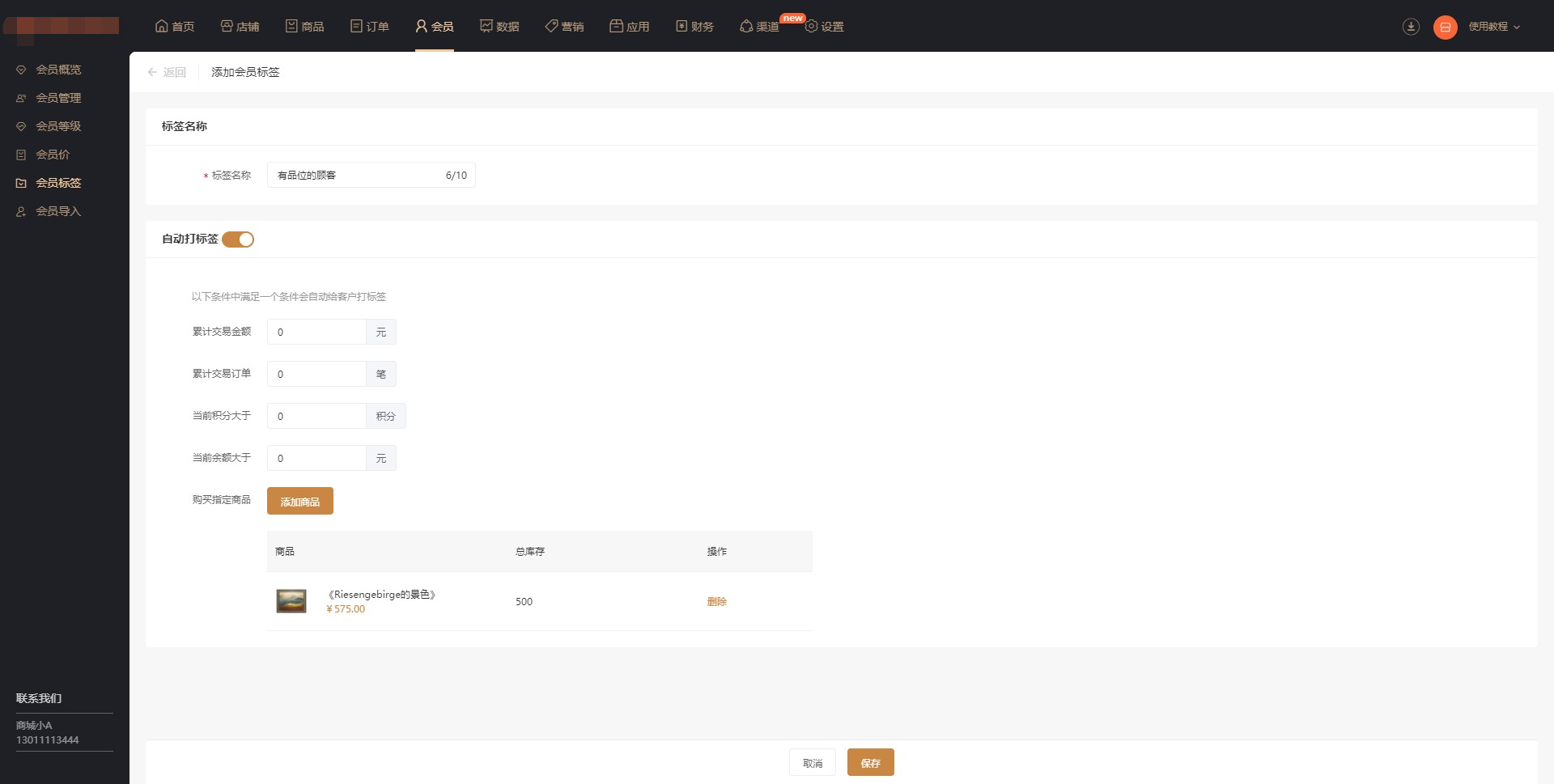 2. 添加会员标签