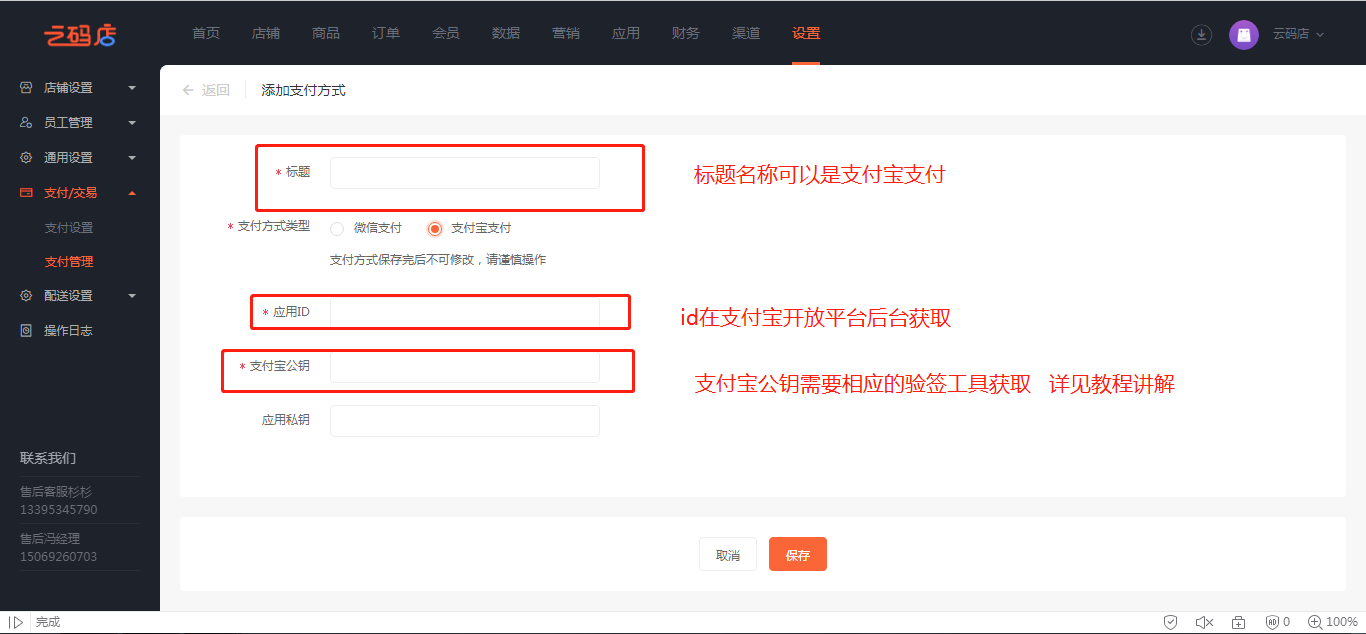 到这里我们的支付宝支付就配置完成了,有不明白的地方可以咨询您的专属客服哦