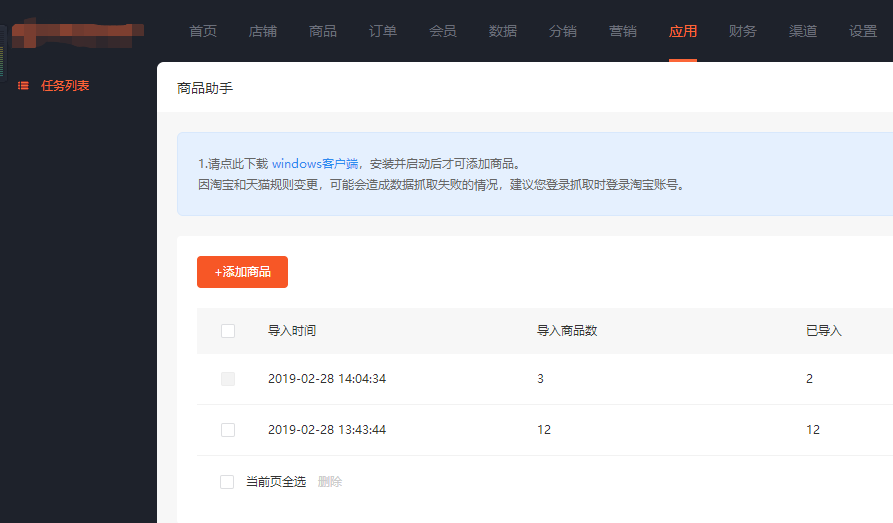 的商品助手插件可以一键获取淘宝、天猫、京东,商家可将相应的店铺中的商品利用助手工具批量获取并导入商城商品的仓库中。但需注意的是需要在您的电脑上运行商品助手客户端,再回到商城内进行抓取