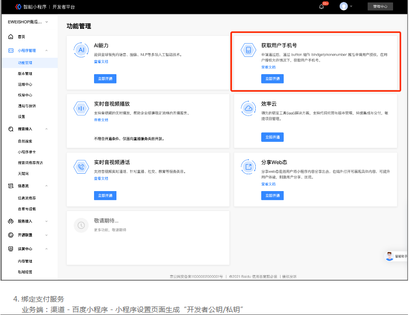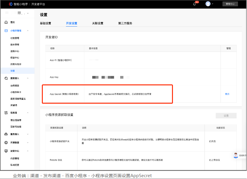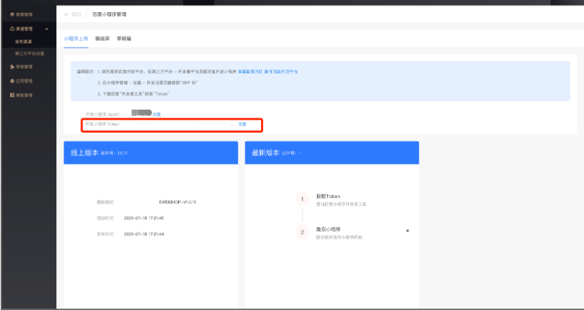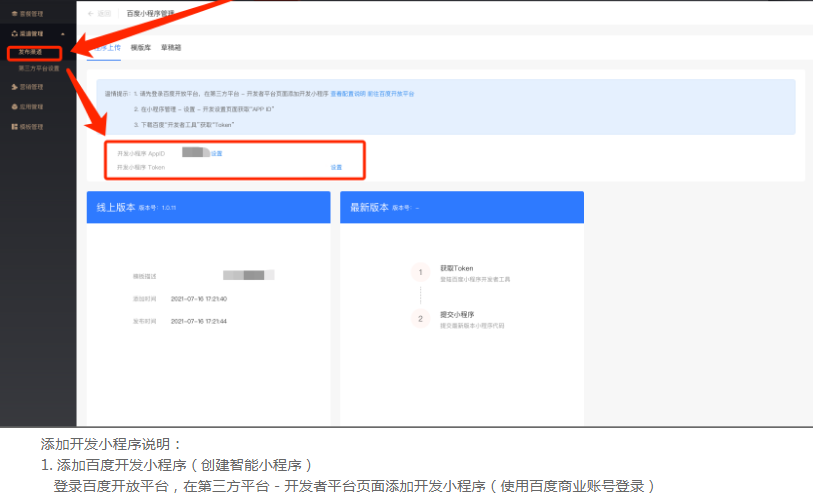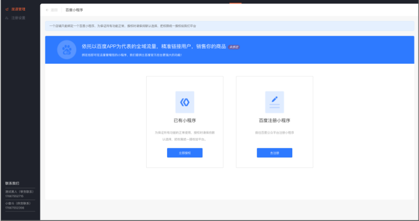 ES业务端后台 - 渠道 - 百度小程序