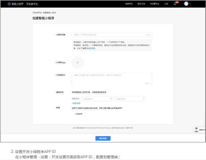 1、配置百度开发小程序