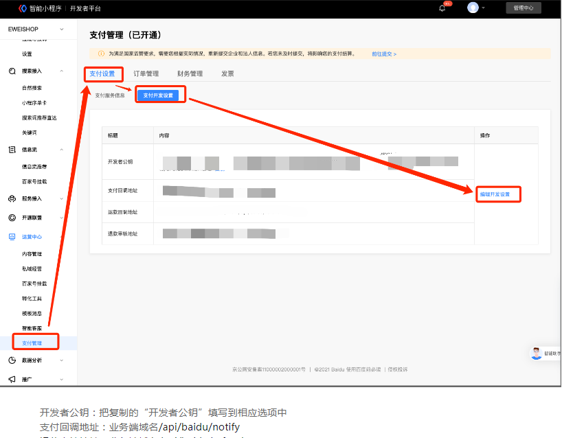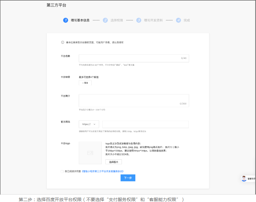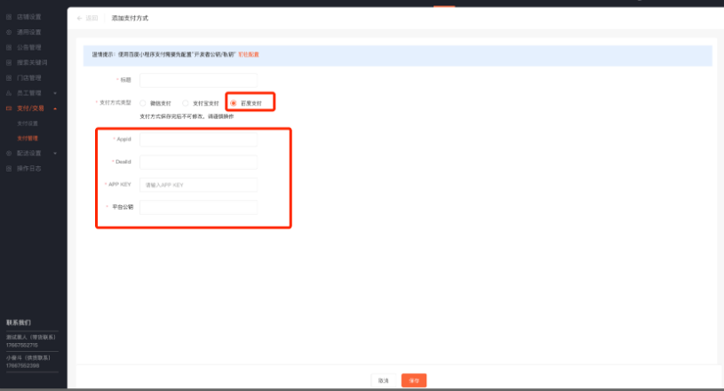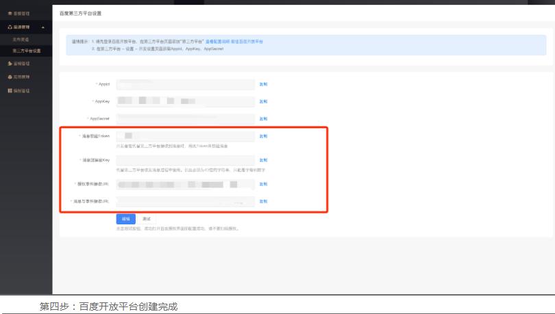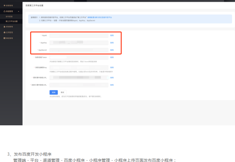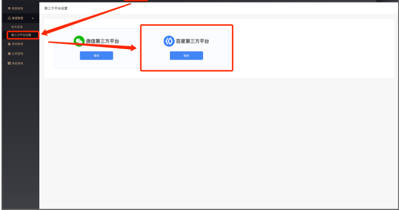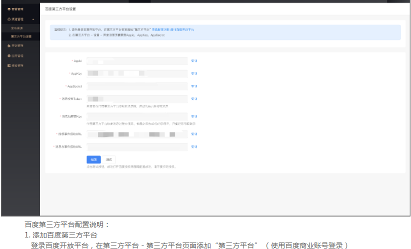 管理端 - 平台 - 渠道管理 - 第三方平台设置页面设置百度第三方平台: