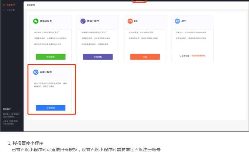 ES管理端后台 - 平台 - 渠道管理 - 百度小程序