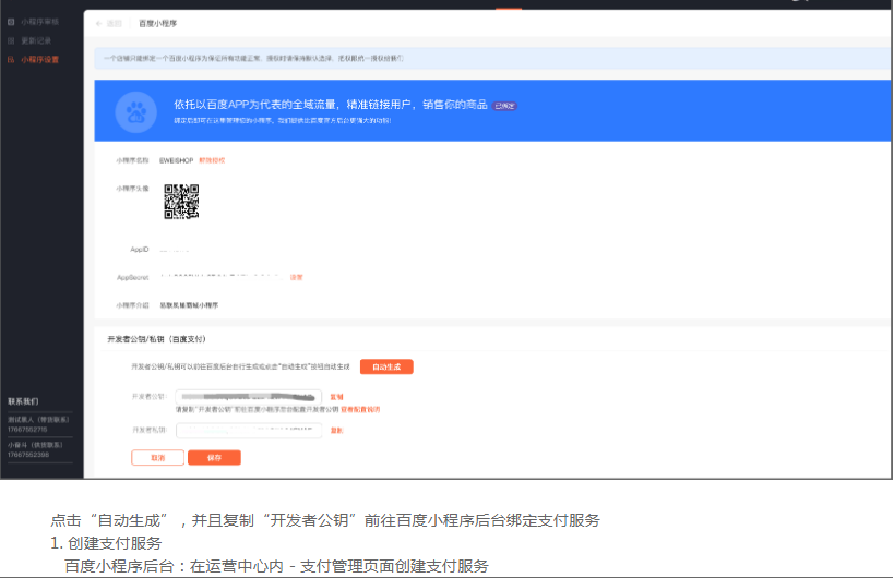 管理端 - 平台 - 渠道管理 - 百度小程序 - 小程序管理页面配置百度小程序: