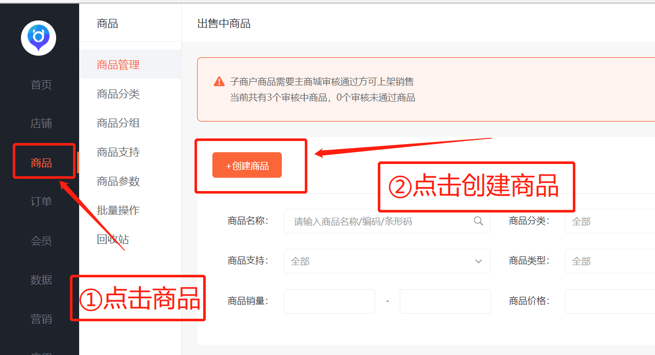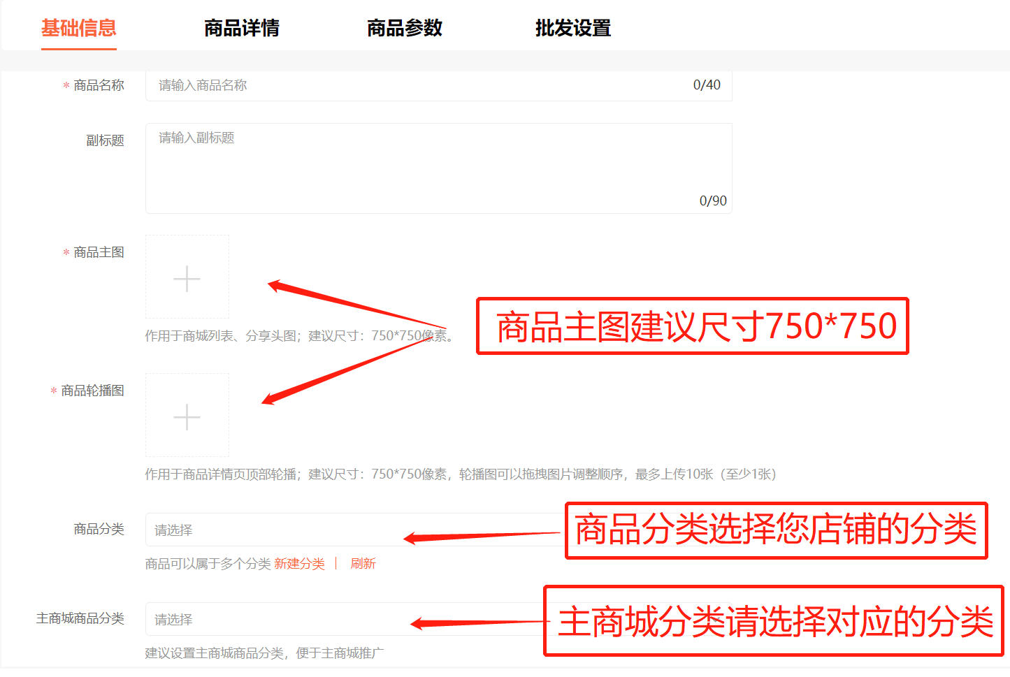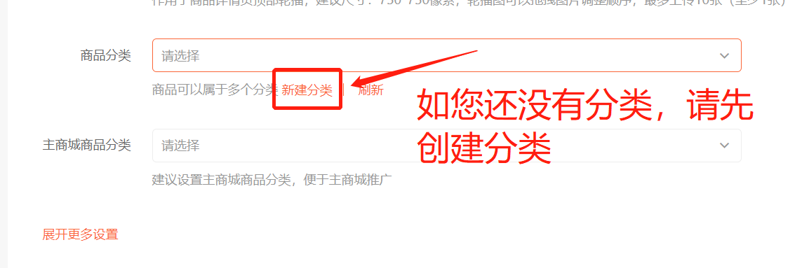 4.填写商品的相关信息,如您还没有设置商品分类,请先点击新建分类设置好分类。