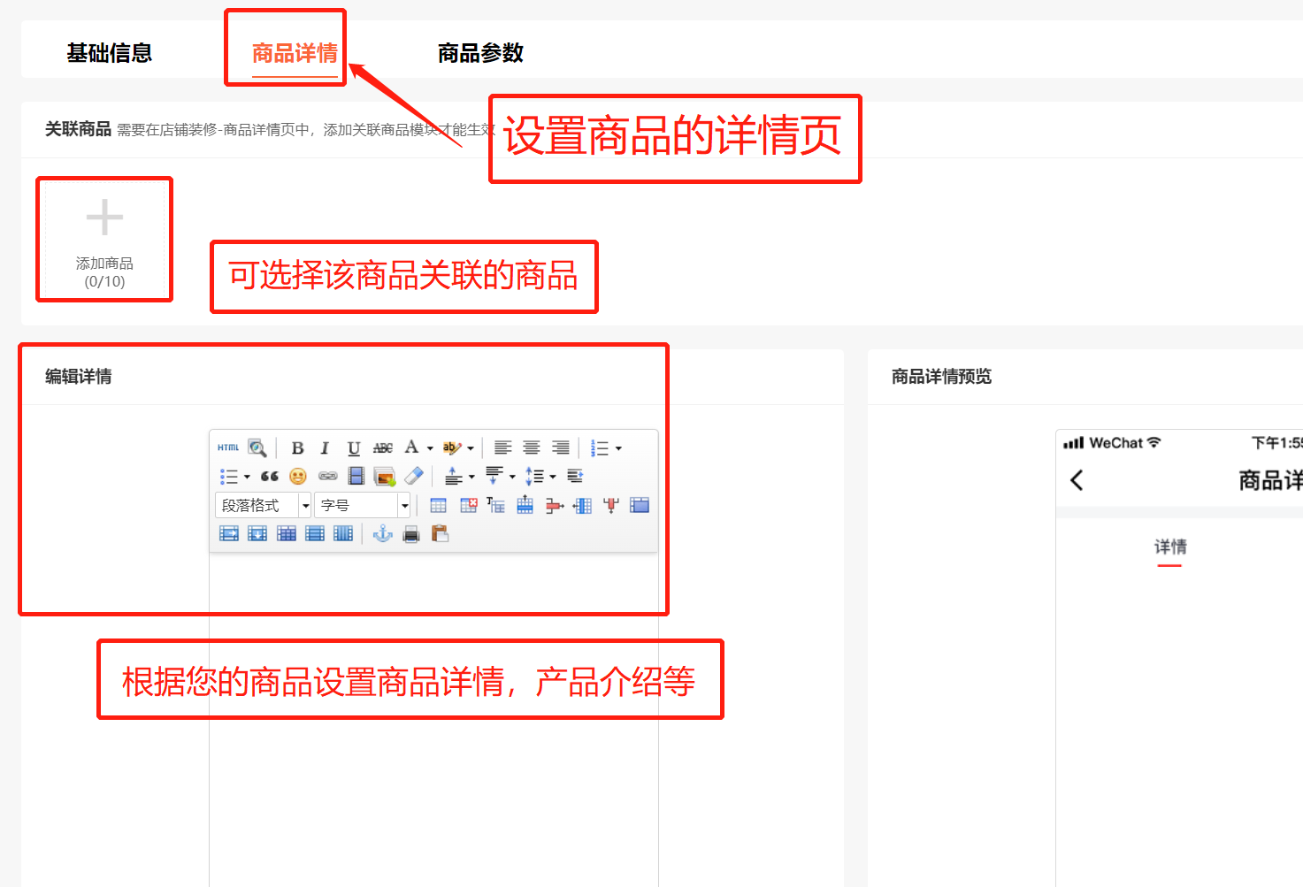 7.商品详情:根据您的商品,上传该商品的产品介绍等信息即可。