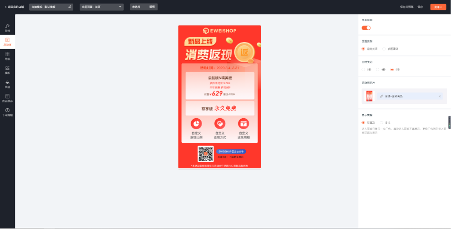 店铺装修启动页,是会员进入商城页面弹出的广告图片,可跳转相关活动页面。