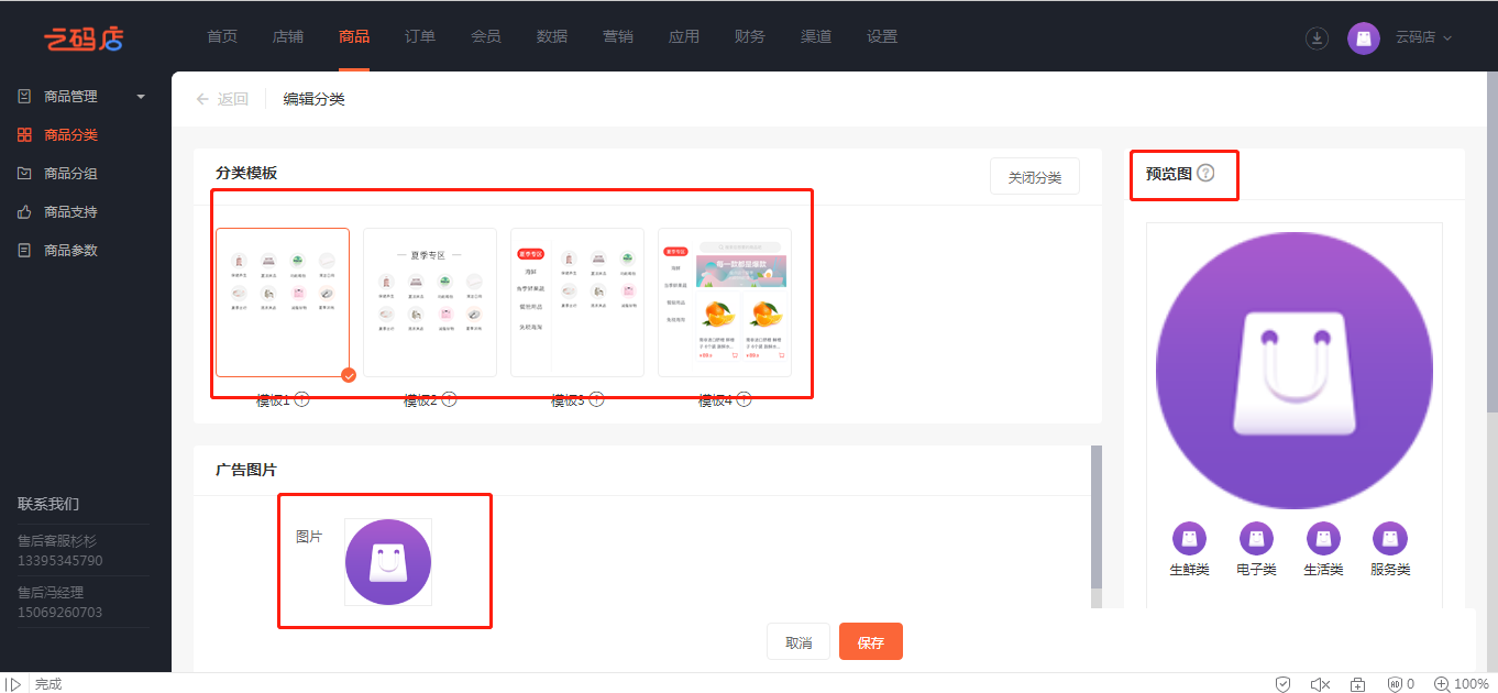 点击编辑分类,可以创建你想设置的分类,可以选择你想设置的风格及分类图标样式都是你自己可以选择的,设置完成后可以在右侧的预览图进行预览。