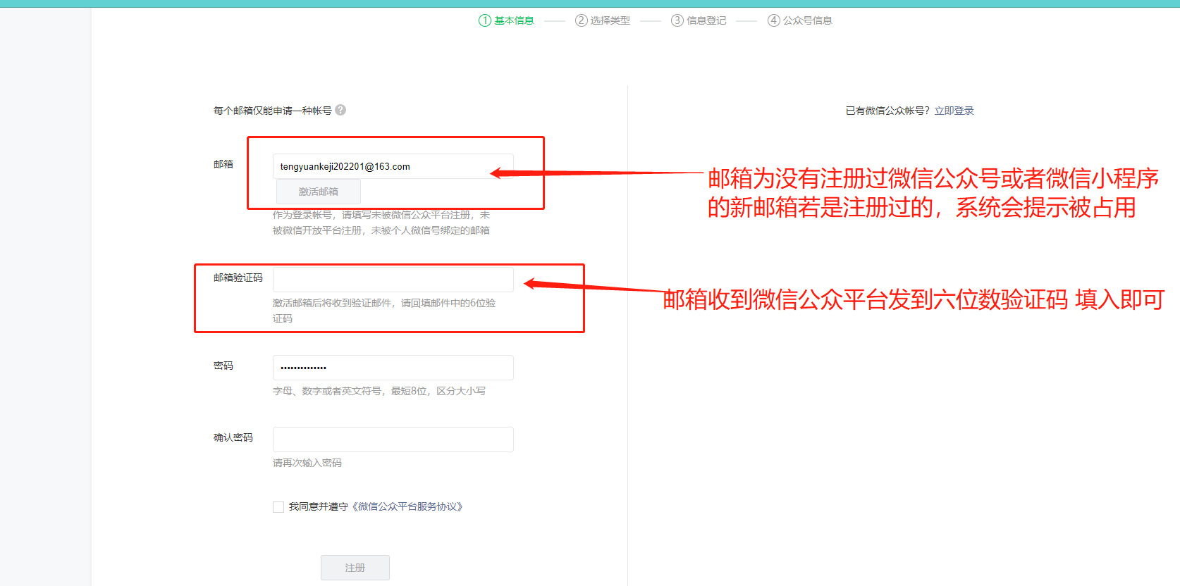 5:回到公众平台官网首页 用账号和密码登录 继续完成注册