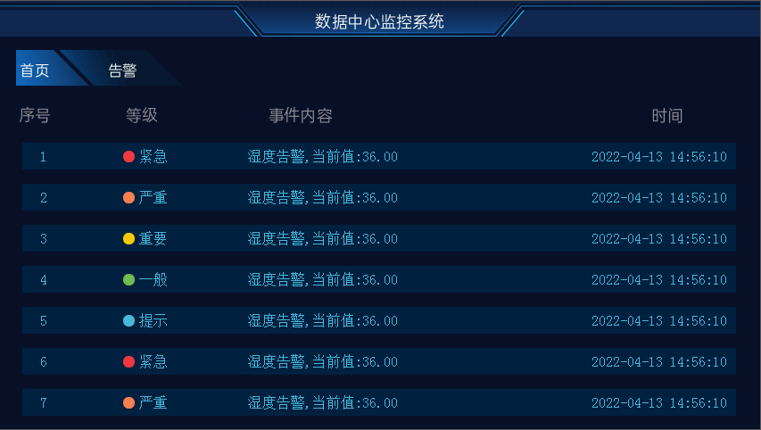 addmessage(i+5,v,"湿度告警,当前值:36.00","2022-03-22 15:39:09")