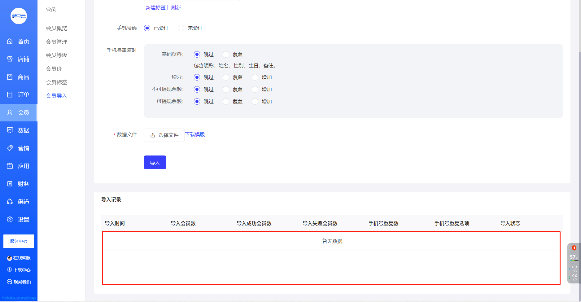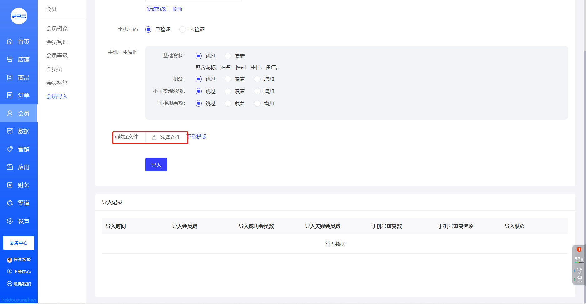 1.选择会员标签--手机号码可选择已验证或者未验证--点击【下载模板】
