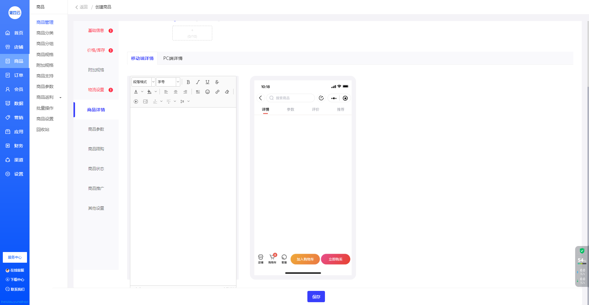 实体商品、虚拟商品、电子卡密、计次时商品、预约商品、批发商品的创建。