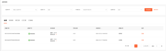(6)子商户可以申请结算,选择一定时间的核销记录提交主商城审核,主商城审核通过后给子商户打款。若主商城拒绝了结算申请,子商户可以在结算管理中再次重新提交申请。