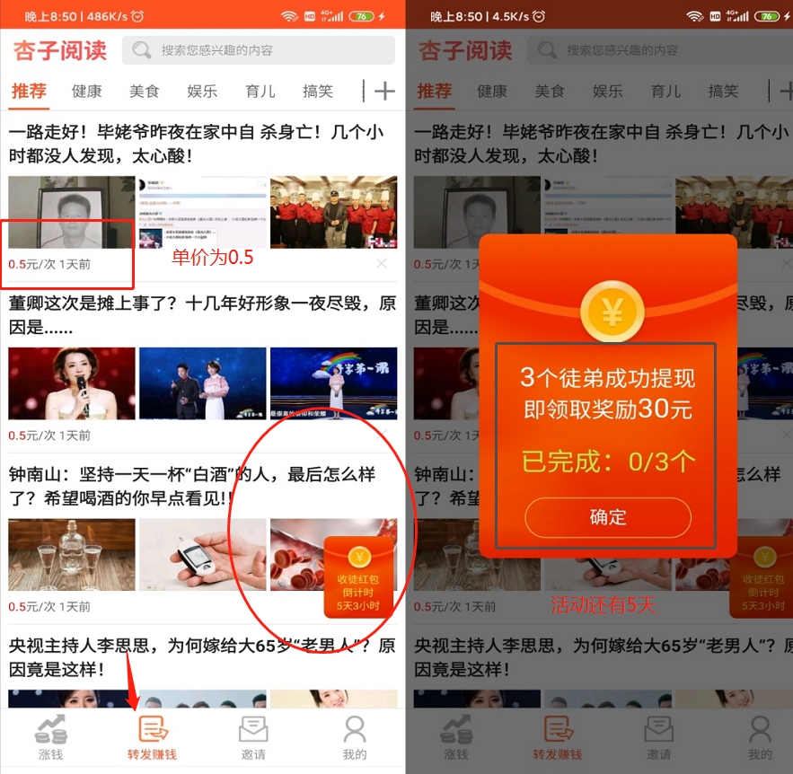 杏子阅读:转发单价0.5,现在每人还能额外撸30元,怎么玩?