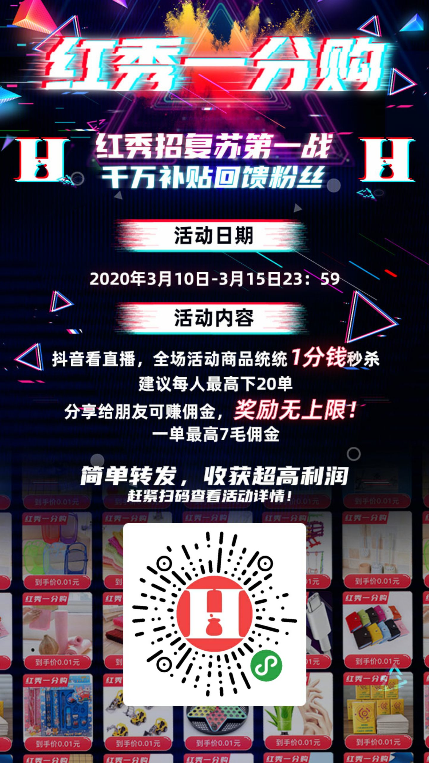 二.红秀嗨购:1分钱能买价值15元的实物商品