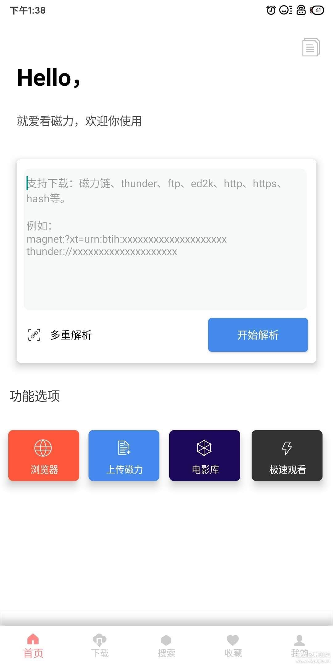 爱看磁力,纯粹的磁力软件,支持磁力链接、thuner链接、ed2k、种子、http、https协议等磁力工具。