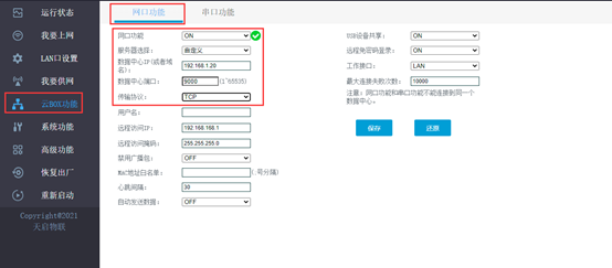 <span style="color:#ff0000">**注意:**</span>1、不建议同时使用网口功能和串口功能内的自定义服务器,因为当其中一个连不上服务器时,会造成另一个连接服务器频繁上线、离线。2、网口功能和串口功能里面的自定义服务器不能配置成相同的,如果配置成相同的,也会造成频繁的上线、离线。建议使用其中一个时,将另一个关闭,即OFF状态。