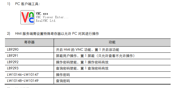 下图是关于VNC功能触摸屏内部寄存器的说明。