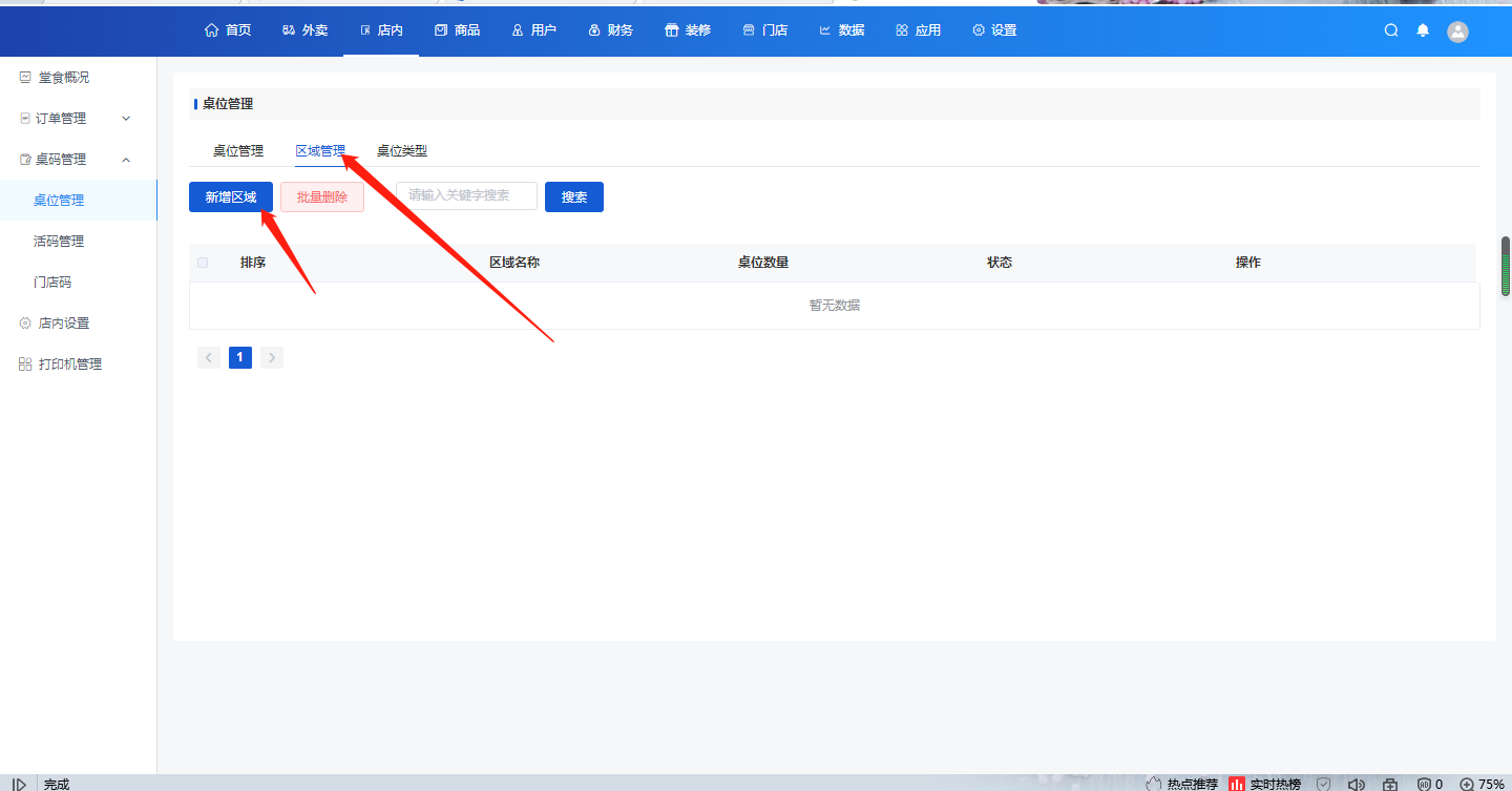 第一步:先创建区域,如一楼、二楼,大厅、包厢等区域