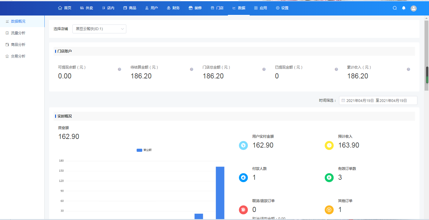 * 此页面可以查看各门店的访客数和浏览量,并分析近期的数据