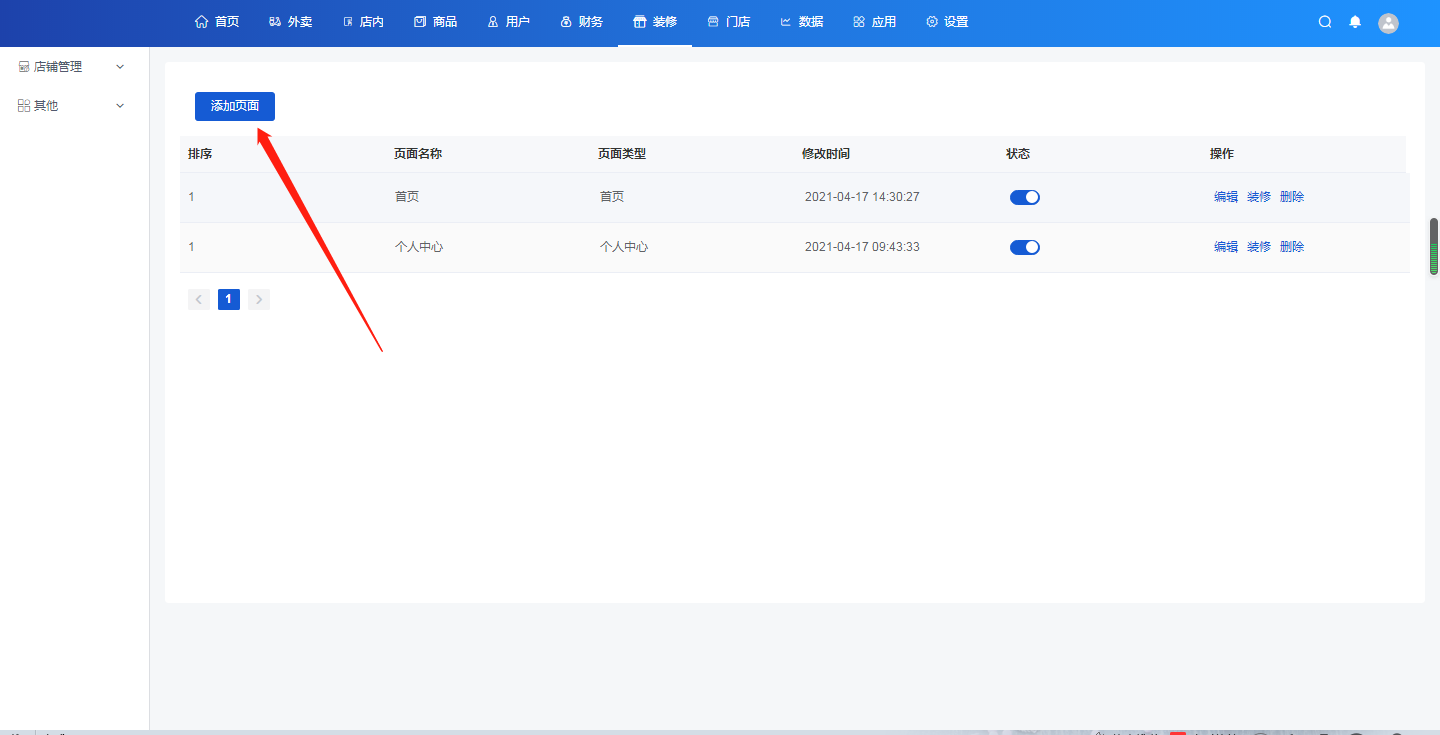 * 店铺装修主要是用于首页DIY和个人中心DIY还有自定义页面