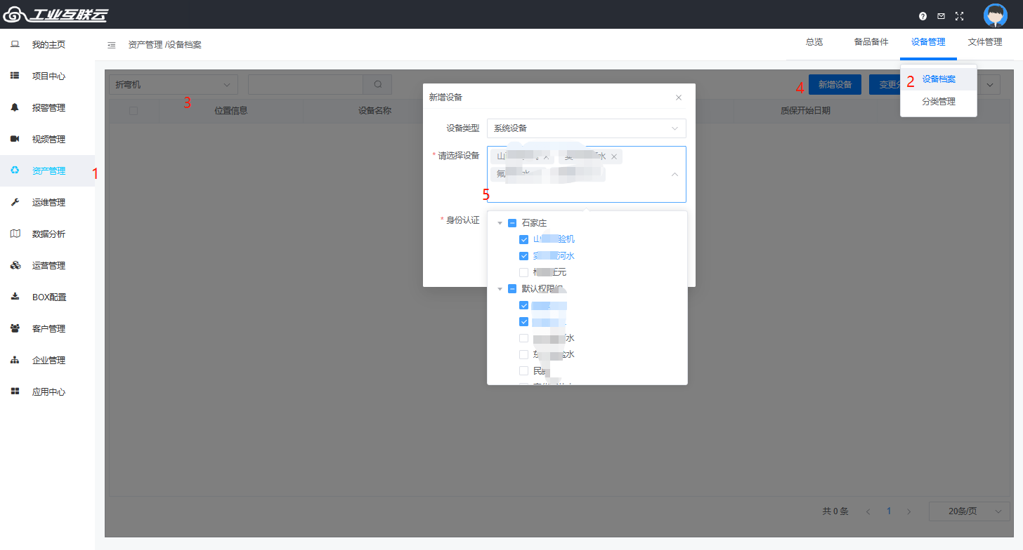 2.新增设备前,一定要注意左上角选择设备分类,在点击新增设备分类
