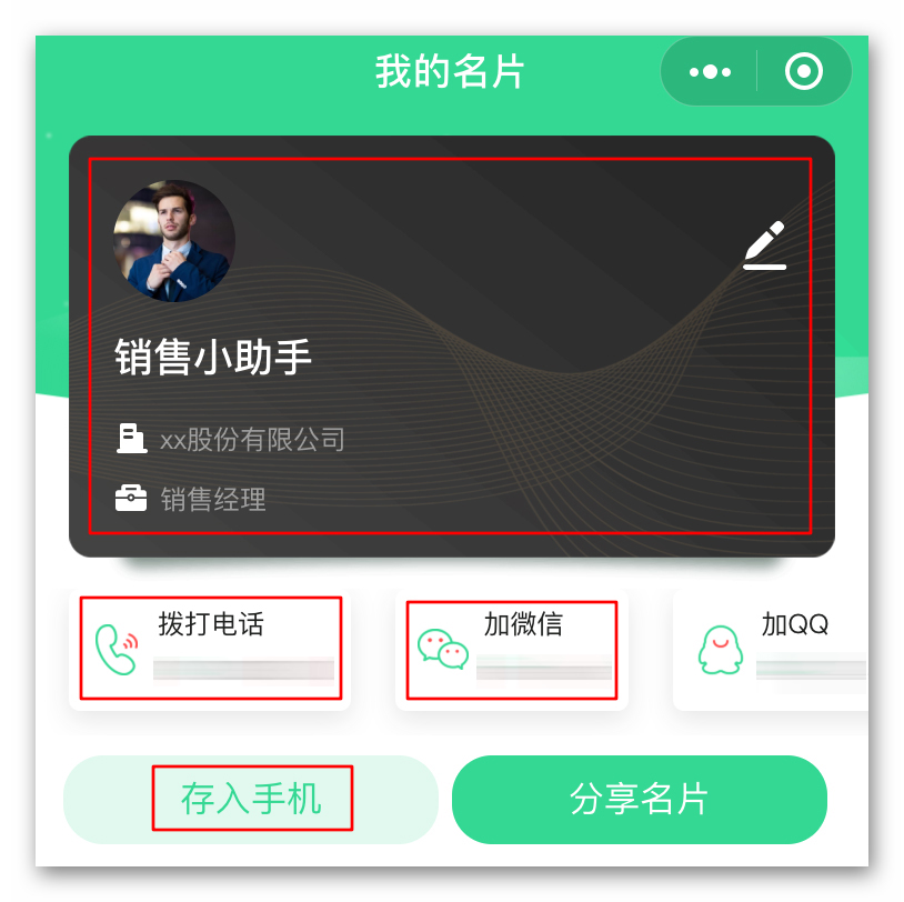 访客访问名片时的哪些行为会触发授权弹窗?1. 微信授权: 微信用户访问小程序时弹窗提示需要微信授权,授权后才能继续访问。2. 手机号授权:1)点击黑色名片栏、【拨打电话】、【加微信】、【存入手机】2)点击任意主推商品卡片或【全部】