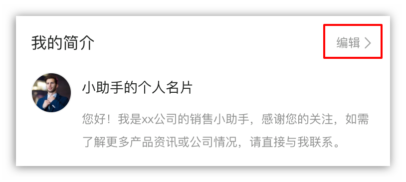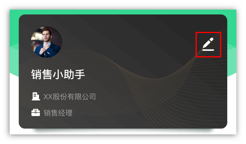 登陆进入系统小程序后,点击小程序页面下方的【名片】,开始设置您专属的个人智能名片。点击右上角的编辑按键,进入个人信息编辑页面。